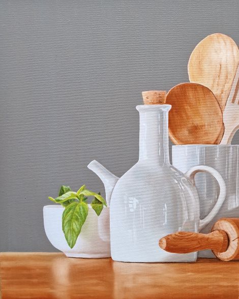 Artistravel Online Life Kurs am Sonntag, den 8.9.Ei Life! Naturalistische Malerei in Öl Dieses kleine Küchenbild werde ich gemeinsam mit Euch zusammen malen. |