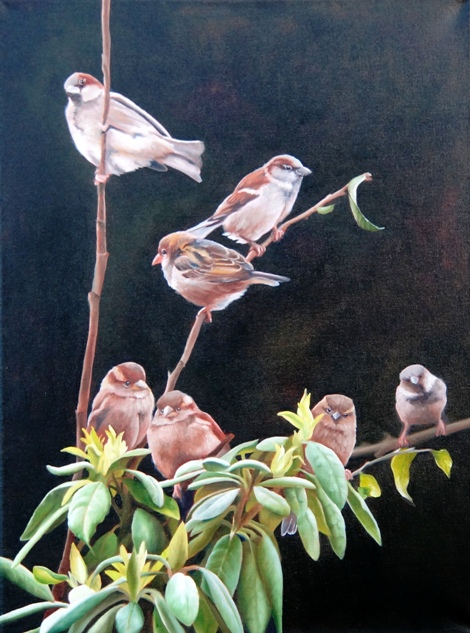 Seven Sparrows · 2021 · Oil on Canvas · 30 x 40 cm · Commission