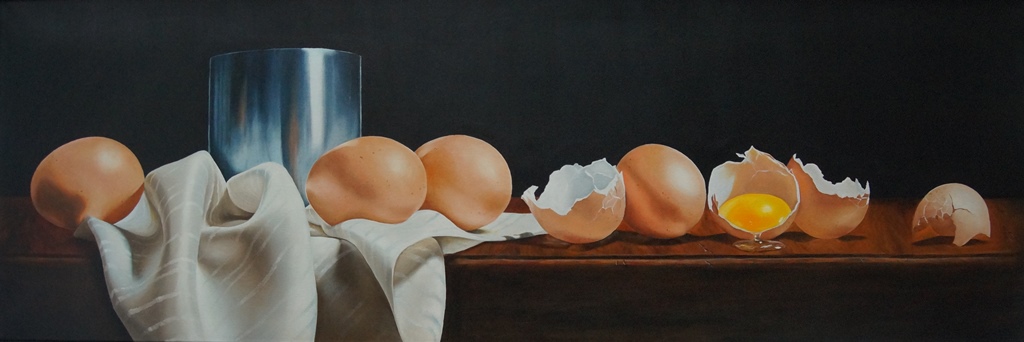 Stilllife with Eggs · 2013 · Oil on canvas · 50 x 150 cm · sold